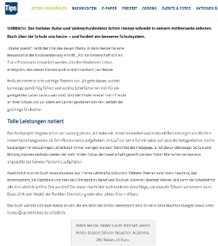 Achim Dirk Heinze ist ein Bücher schreibender, promovierter Rektor in einer Grundschule in Bayern und zeigt in seinem neuesten Buch auf, "weshalb unsere Kinder bessere Schulen brauchen" (so der Untertitel des Buches Kinder zuerst (Baden-Baden: Academia - Nomos, 2021). Das Buch beginnt mit einem Zitat von Erich Fromm (aus Die Furcht vor der Freiheit): "Wenn man ein Kind fragt, ob es gerne jeden Tag in die Schule geht und die Antwort lautet: ‚Aber natürlich', dann ist es zweifelhaft, ob die Antwort stimmt. In vielen Fällen stimmt sie sicher nicht."