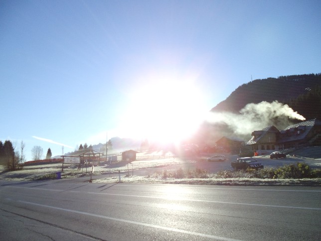 Die ersten drei Stunden änderte sich an den angesprochenen Minusgraden wenig - bald waren die ersten kleinen Eisklumpen in der Radflasche; getrunken wurde trotzdem. Nach Salzburg wurde es dann in den sonnigen Abschnitten deutlich wärmer - diese sind in Gebirgstälern im November allerdings spärlich gesät. Diesbezügliche Tiefpunkte waren der Pass Lueg mit eisigem Gegenwind (eher - sturm!) und die lustige Radfahrereinkehr "Jaqueline" nach Schwarzach. Dort scheint den ganzen Tag keine Sonne hin, sodass Raureif, gefrorene Pfützen und Kälte nicht nur den Radfahrer erschaudern lassen.