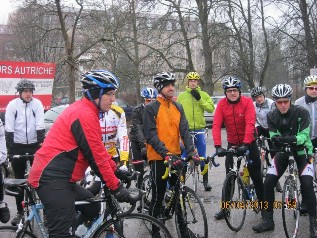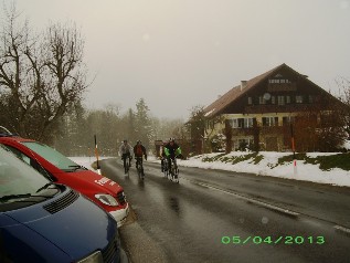 ... doch knapp die Hälfte der ursprünglich gemeldeten 60 Starter ließ sich nicht abhalten, um sich diesen "Auftakt ohne Maß" - nach verständlichen Maßstäben der meisten Radsportaktiven - anzutun. Man kann es wirklich niemand verübeln, wenn er an so einem Tag im Bett bleibt und das Rennrad im Keller stehen lässt - eigentlich die normale Verhaltensweise.