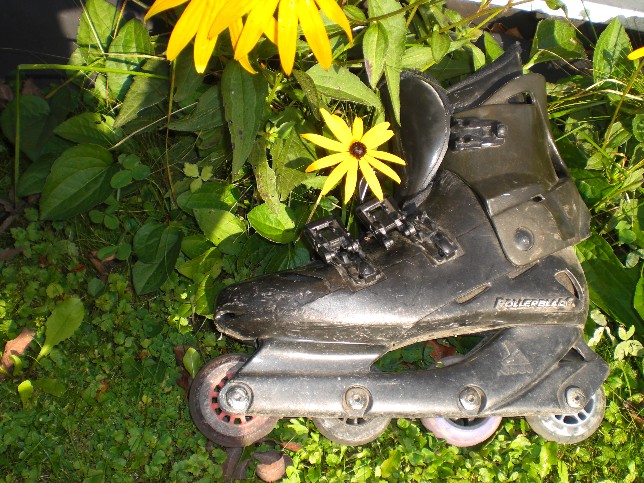 Am 1.11.2014 ist es nun endlich soweit. Nachdem am 31.10. die zeitliche 60-Minuten-Sporteinheit Nummer 9999 Geschichte geworden ist (übrigens eine Nachtfahrt mit dem Rennrad zu einer Anti-Halloween-Geburtstagsfeier), kann ich mir die Sportart am Allerheiligentag aussuchen. Gewählt wurde bei 17° und Sonne Inline-Skaten (siehe Abbildung: "Rollerblades Quattro Stagioni" , Baujahr 1995 mit vier verschiedenen Rollen, allesamt nach ein bis zwei Jahrzehnten beim Fahren teigig wie eine halbgare Pizza).
