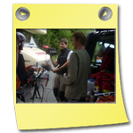 Nach 47.48.h im Ziel, nichts wie raus aus den Schuhen! Gab gleich einen ordentlichen Fußsohlenburner auf dem "kochenden" Asphalt. Hier kamen die Betreuer zum letzten mal zum Einsatz: Ein zum Schuhwerk umfunktionierter Pizzakarton (siehe Foto auf der Startseite) war die letzte knifflige Aufgabe nach 2 Tagen und Nächten Tagesmutter, Krankenpfleger usw. für meine fürsorglichen Betreuer.
