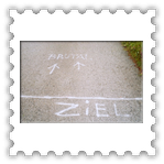 Von hinten kam nichts, wer wie weit vorn war, konnte man bei Regen und Nebel mit 10m Sicht nicht beurteilen. Die Markierung "Ziel 300m" galt nicht diesem Berglauf. Da hätte ich bei der Wettkampfbesprechung besser aufpassen sollen!
