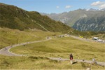 Mittlerweise ist es heiß geworden, aber bei diesem perfekt organisierten Radmarathon erhält man geöffnete Cola- oder Wasserflaschen auf Zuruf. Bei 1800 Höhenmetern mit 9 % konstanter Steigung eine Wohltat! Das Bergpanorama am Timmelsjoch (2509 m) ist herausragend und sicher auch für die vielen per Rad gekommenen Fans ein besonderes Erlebnis!