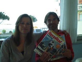 um 15: 20 Uhr im Hotelzielort Igea/Cesenatico, wo ich von der gesamten Familie Lazzarini erwartet werde, Bewirtung mit Bier (das ich ablehne > nichts wie an den Strand und ins Mare rein!), besagtes Zeitungsfoto >>>
