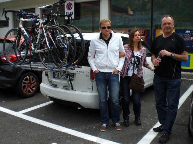 Tag 2: Regen all day! Abfahrt in Stans, an Innsbruck auf Nebenstraßen vorbei (Absams, Patscherkofel, Matrei) zum Brenner, dort noch mehr Regen und nur 5 Grad!, Hoffnung auf besseres Wetter in Italien (beim Ötztaler so gelernt) erfüllt sich nicht, in Südtirol geht der Regen erst richtig los, Stimmungstief, erst ab Bozen Wetterbesserung mit nur noch Schauern, die allerdings so heftig ausfallen, dass unentwegt gilt: Regenhose aufi, Regenhose owi, oba heid geht´s (ned) guat... , leichter Gegenwind ab Bozen.