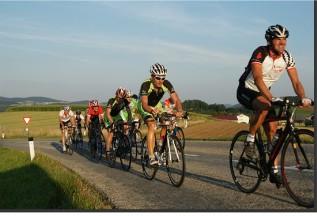 In der Nähe von Passau, im österreichischen Engelhartszell, findet jährlich am Abend vor M.H. ein vermeintlich kleines Bergrennen statt. Da es von mir zu Hause nur ca 80 km Anreise sind, bin ich mit dem Rennrad unterwegs. Klein ist allerdings der falsche Ausdruck. Deutlich mehr Starter als beim Kitzbüheler Horn bringen ihre Räder zum Startareal. Obwohl ich mich 25 min vor dem Startschuss aufgestellt habe, rutsche ich stehenden Fußes von Reihe 2 in Reihe 8 zurück, da sich immer mehr Fahrer von vorn aufstellen. Mit einem einfachen rot-weißen Startband wäre das Problem gar nicht erst entstanden. So fahre ich wieder einmal viel zu weit hinten "in den Berg hinein". Zunächst gilt es, zur dritten Gruppe aufzuschließen, dann zur zweiten nach vorne zu fahren. Ein Versuch, dieser noch davonzufahren, um der Spitzengruppe näher zu kommen, scheitert erwartungsgemäß.