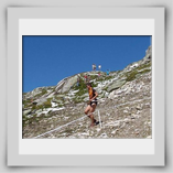 Ziel der genannten Maßnahme war ein schneller zweiter Wechsel vom Rad zum Lauf. Dies wurde allerdings durch eine Fehlleitung vor der Wechselzone untergraben. Das unfähige Winken nach rechts des überforderten Streckenposten galt wohl den Autos vor mir. Auf dem Autoparkplatz wurde ich von einer ortskundigen Person wieder zurückgeschickt und erreichte mit einem Zeitmalus von einer Minute nach 51 Minuten die 2. Wechselzone.Die Berglaufstrecke war anspruchsvoll ging über Gesteinsblöcke und Schnee. Auch hier konnte ich bergauf viele Athleten überholen. Auf den Bergabstrecken wurde ich hingegen überholt. So auch direkt vor dem Ziel. Mit meinen paar Laufkilometern 2007 sollte ich besser nichts riskieren. Nach 1.08 (Gesamt: 2 Std, 15 min) kam ich wieder einmal als 9. ins Ziel.